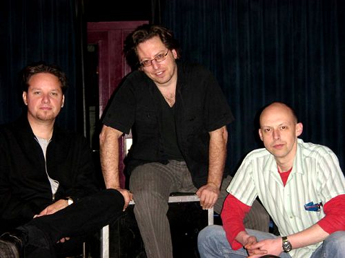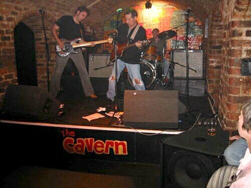 | Eric Blakely, Marty Frank, and Marc Lemmen at the Cavern Club, Liverpool |